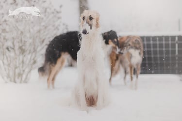 Benia zaczęła już skromną kariere wystawową i mamy również nadzieje na sukcesy w coursingu i racingu.
